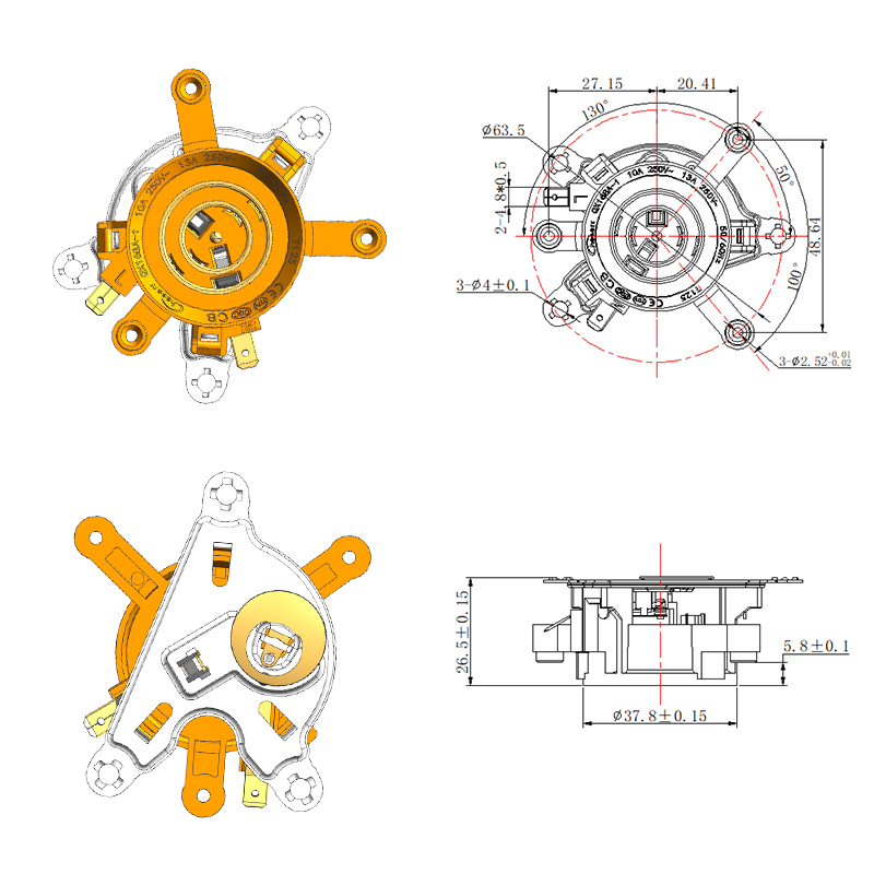 Mechanically, the coupler's housing is formed from engineering-grade insulating materials such as glass-filled nylon or phenolic resin, which are selected for their ability to withstand steam, high thermal cycling, and mechanical insertion forces. The precision molding incorporates keying features—three ring alignment tabs, spring‑loaded clips, or bayonet locks—ensuring repeatable and confident assembly on automated production lines. The distinct “ring” contacts are configured concentrically to improve contact area with the matching kettle base, supporting secure engagement even when the kettle is lifted or lightly jostled during use.
