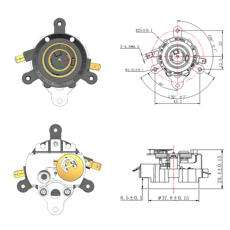 View MoreThe automatic three‑ring kettle coupler developed by Qianxun represents a refined convergence of mechanical precision, electrical robustness, and ease of assembly. This coupling device sits at the crucial interface between the kettle's steam thermostat switch and its heating base, providing an uninterrupted power supply during normal operation and ensuring secure power interruption upon reaching the thermostat threshold. The three‑ring terminology reflects the design's triple‑contact mechanism: two primary conductive rings for power transfer and a third auxiliary ring reserved for sensing or signaling, such as LED indicators, thermal fuse, or control circuitry — an innovation that enhances both function and integration flexibility.